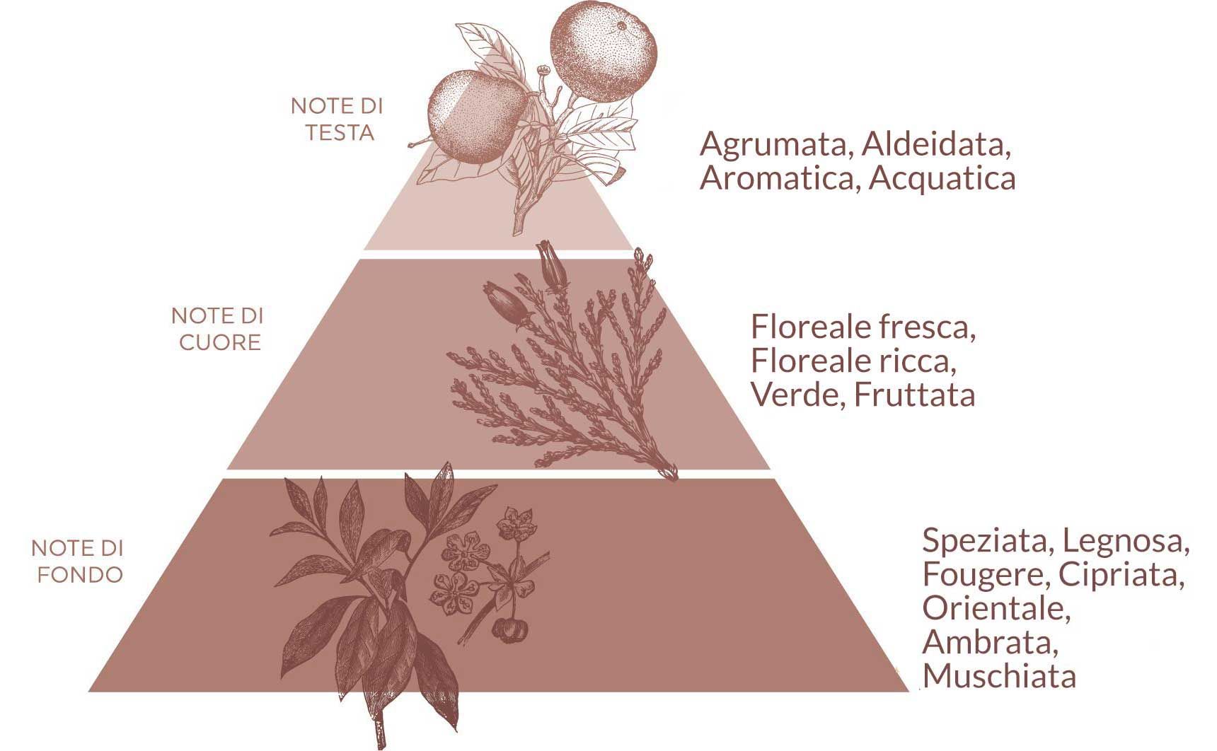 Vi fanno parte le famiglie olfattive e relative sfaccettature: